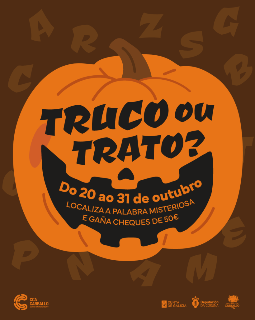 O Centro Comercial Aberto (CCA) Carballo pon en marcha unha nova e divertida campaña de Samaín baixo o lema “Truco ou trato?”, que se desenvolverá do 20 ao 31 de outubro co obxectivo de premiar a fidelidade da clientela e impulsar as compras nos establecementos locais, ademais de darlle maior visibilidade á diversidade de comercios que forman parte da asociación.