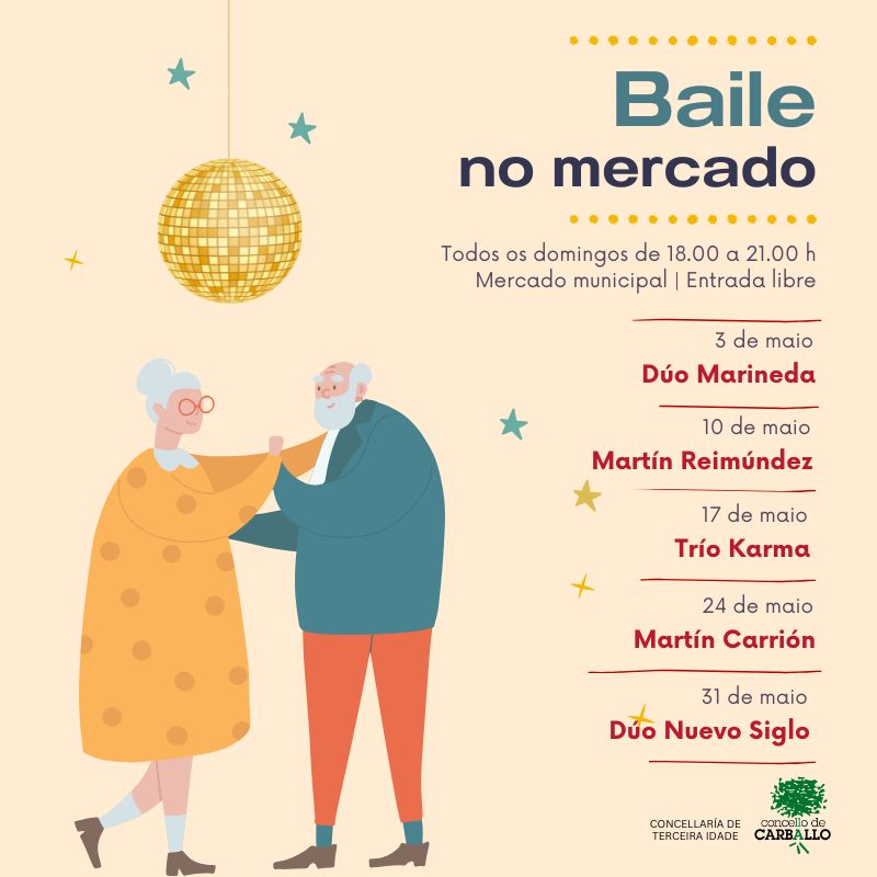O Concello de Carballo, a través da Concellería de Terceira Idade, continúa co programa “Baile no mercado”, unha iniciativa pensada para fomentar o lecer activo e a socialización entre a veciñanza, especialmente das persoas maiores.