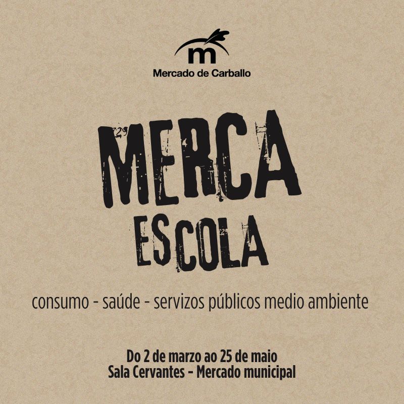 A Concellaría de Feiras e Mercados do Concello de Carballo pon en marcha unha nova edición de MercaEscola, un programa formativo e informativo dirixido a persoas adultas que converterá a Sala Cervantes do Mercado Municipal nun espazo de aprendizaxe, reflexión e convivencia entre o 2 de marzo e o 25 de maio. O concelleiro delegado da área, Ramón Varela, e o alcalde, Daniel Pérez, veñen de presentar o programa deste ano.