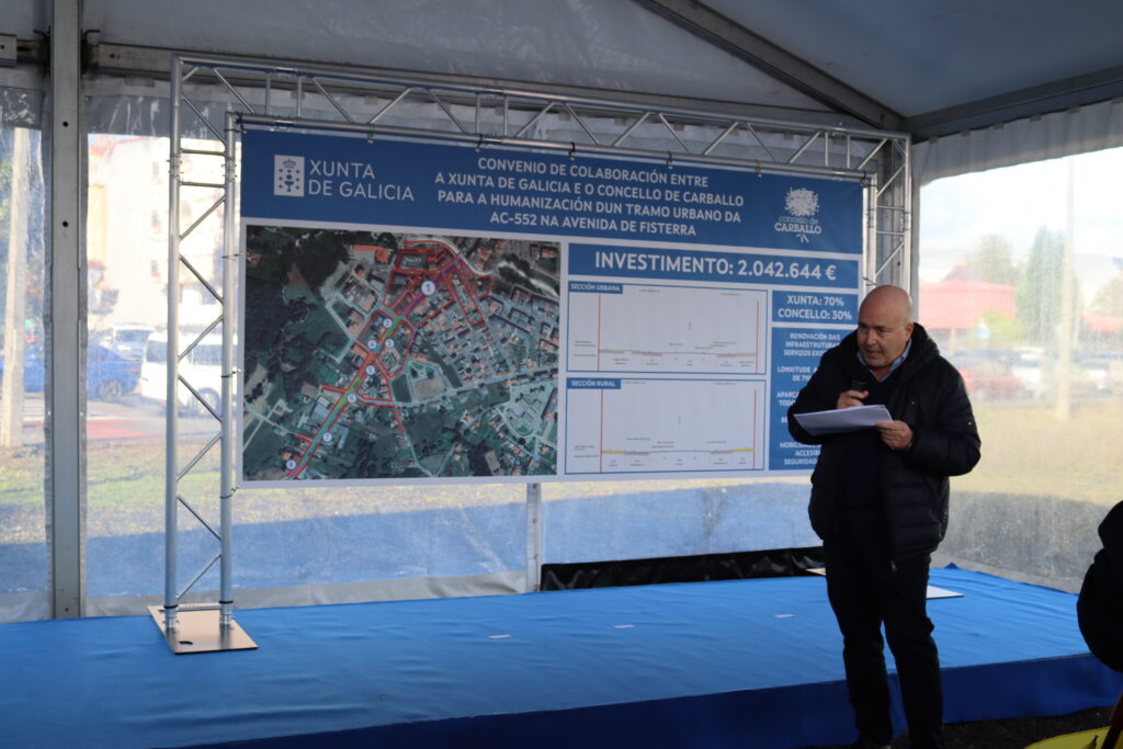 O presidente da Xunta de Galicia achegouse ata Carballo para asinar o convenio, que inclúe a adecuación integral do treito comprendido entre los quilómetros 31+930 e 32+640. O acto levouse a cabo á beira da avenida de Fisterra, tras un breve percorrido a pé desde o Parque do Anllóns, no que está en execución outra actuación na que colaboran as administracións local e autonómica coa finalidade de reducir o risco de inundacións nas beiras do río Anllóns. Tanto Daniel Pérez coma Alfonso Rueda destacaron, precisamente, esa colaboración institucional como un modelo a seguir.