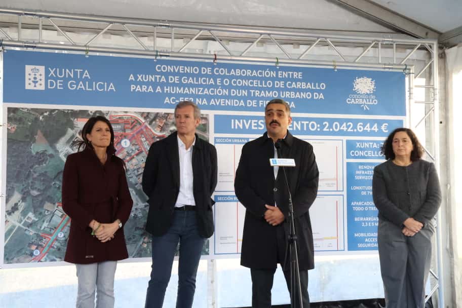 O alcalde de Carballo, Daniel Pérez, e o presidente da Xunta de Galicia, Alfonso Rueda, asinaron este xoves un convenio de colaboración para acometer as obras de urbanización da avenida de Fisterra. A actuación ten un orzamento de 2 millóns de euros, que serán financiados nun 70% pola Xunta e nun 30% polo Concello, que tamén se encarga da redacción do proxecto e asumirá a titularidade da vía, que nestes momentos é autonómica.